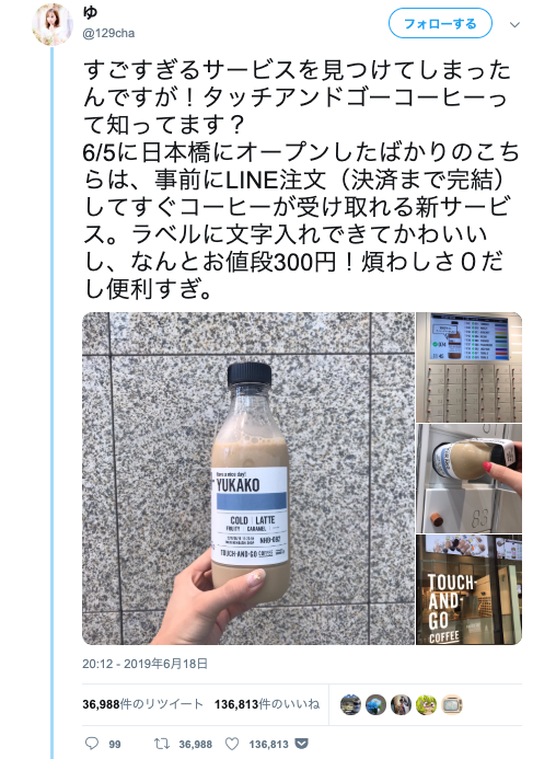 自分の名入りラベルのドリンクが注文できちゃう 日本橋にオープンした Touch And Go Coffee が話題 Isuta イスタ 私の 好き にウソをつかない
