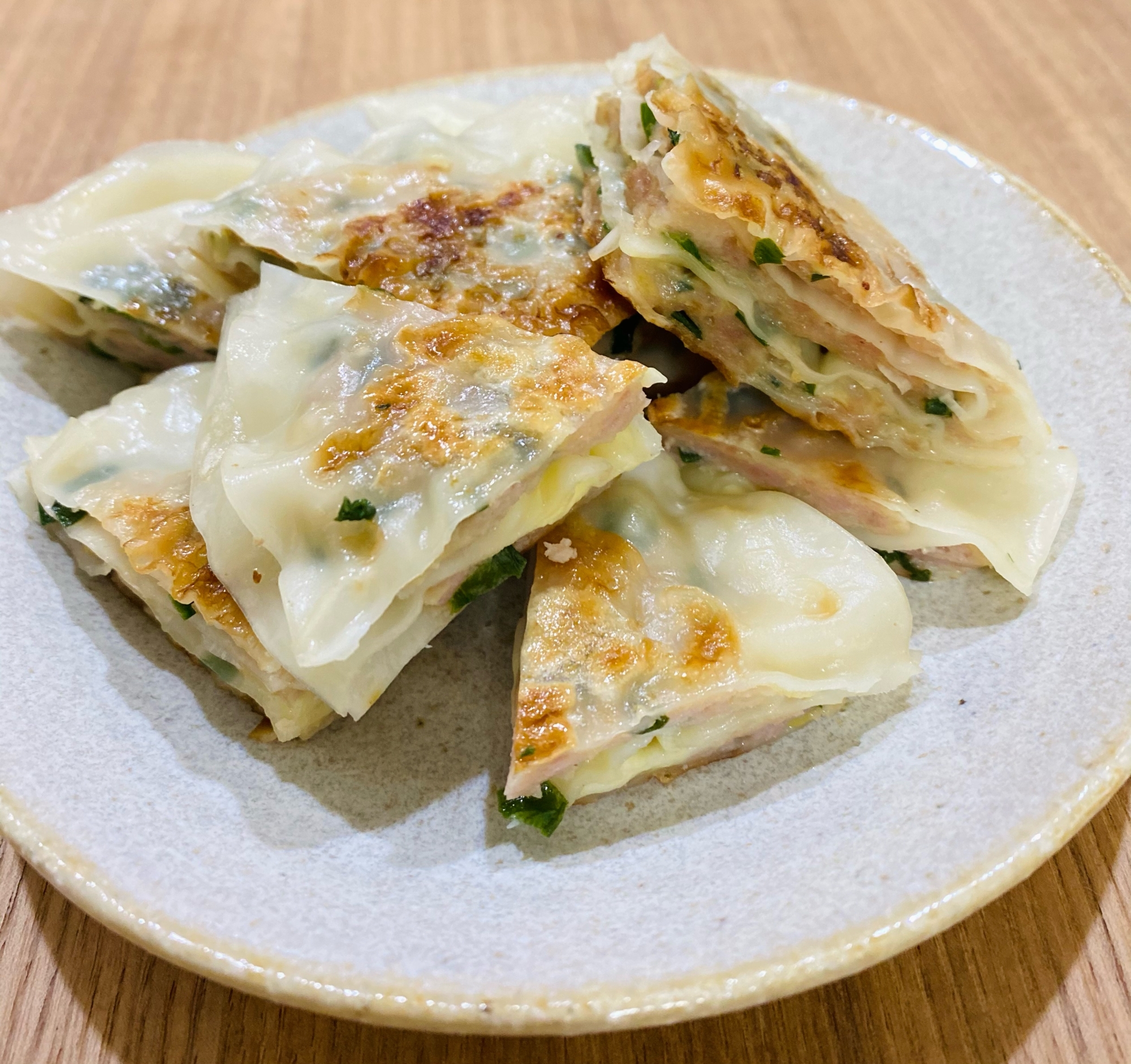 餃子の皮deなんちゃって広島焼き風 Eatpick