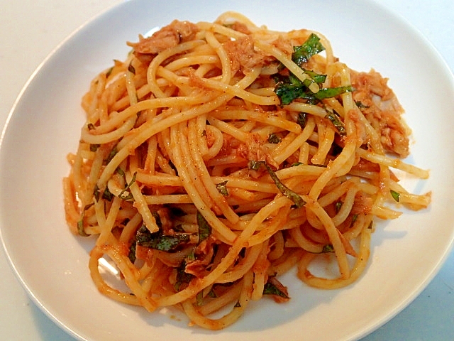 ツナと大葉のガーリックケチャップパスタ レシピ 作り方 By ぷ みぃまま 楽天レシピ