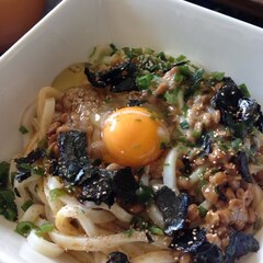 納豆カルボナーラうどん 材料 うどん(冷凍) 2 玉 卵 2 個 (a)納豆 2 パック (a)パルメザンチーズ 大さじ2 (a)しょうゆ 大さじ1 (a)みりん 小さじ1 万能ねぎ(小口切り)、焼き海苔 各適量 作り方 1大きめのボウルに卵をよく溶く。(a)を入れてよく混ぜる。. <材料>太打ちうどん 100g納豆1カップ(40g)卵 1個粉チーズ 大さじ1とトッピング用に適量大葉3枚あらびきコショウ 適量めんつゆ 大さじ1<作り方>①太打ちうどんをゆでている間に、納豆を付属のたれ、からしと混ぜる。②卵を盛りつけの器に溶き、粉チーズ大さじ1を入れる。. 釜玉うどんon納豆 材料 (一人分) うどん・・・一玉 卵・・・・・1個 納豆・・・・1パック めんつゆ・・大1くらい 鰹節・・・・適量 万能ネギ・・適量 レシピはこちら! 熱々のうどんを納豆と卵で作ると、カルボナーラみたいなクリーミーになるみたい.