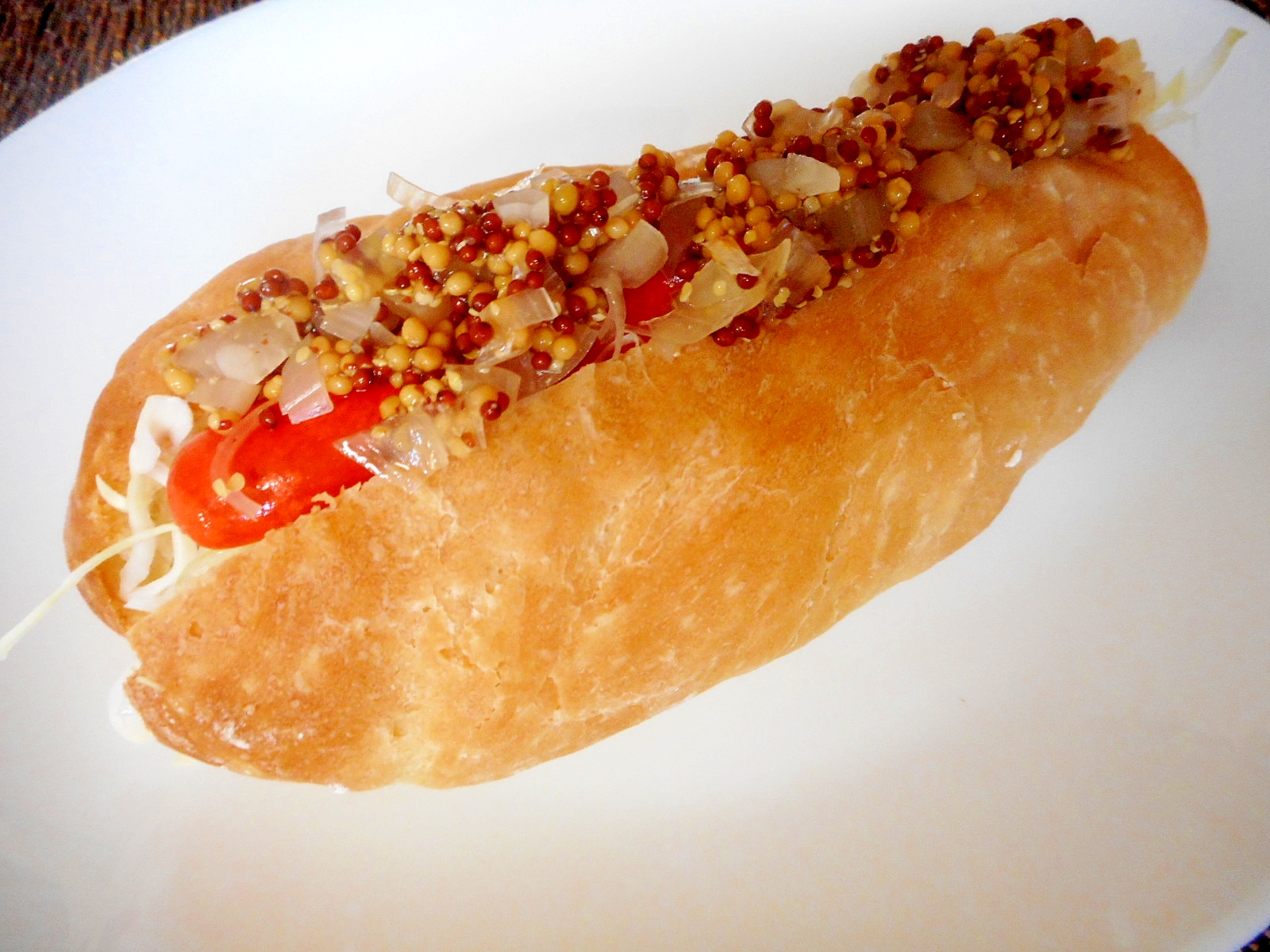 ホットドッグ♪ ~自家製の粒マスタードで!~ 料理 ブログ記事や裏話など:http//ameblojp/cookingspapa/entryhtml. ② ホットドッグ用のパン「ホットドッグバンズ」「ドッグパン」か、ソフトなフランスパンの内側にバターを塗り、ソーセージをはさんでトーストする。 ③ 玉ねぎのみじん切り、ピクルスのみじん切りをはさんで、トマトケチャップ、マスタードをかける。. ソウル チーズホットドッグ+ハニーマスタードソース付きセット 原材料名 ・ホットドックミックス(小麦粉、上白糖、変性澱粉、膨張剤、混合粉乳) ・チーズ(モッツアレラシーズ、変性澱粉、精製塩、ph調整剤).
