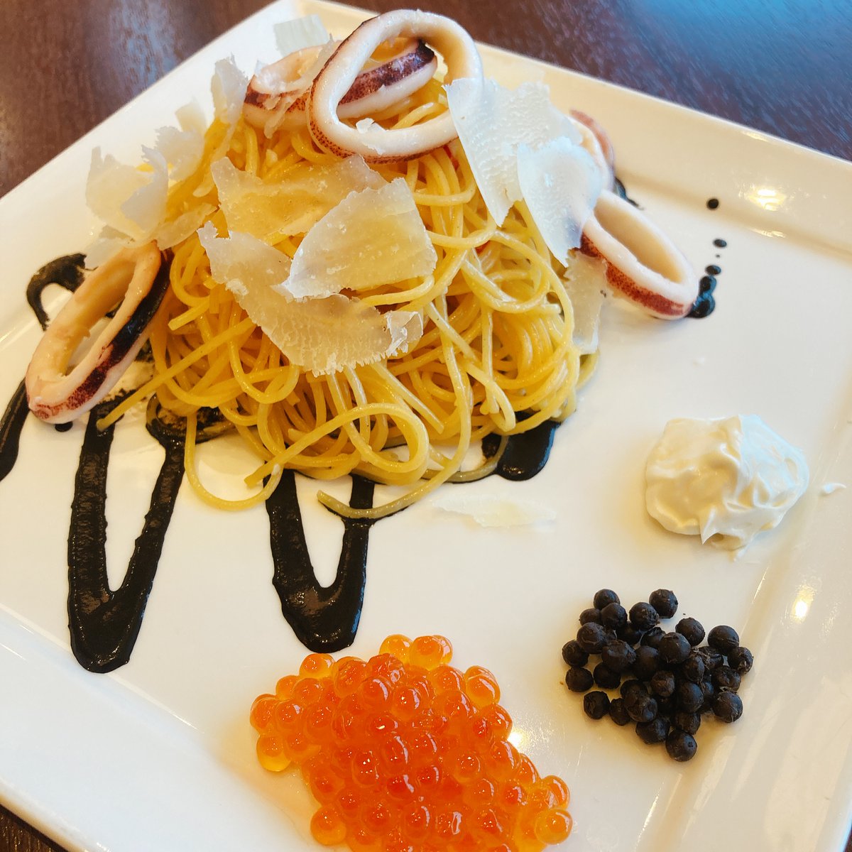 ガスパロ 幸せを運ぶヨウム店 まだ食べてない方 白から黒に変わるイカスミパスタめちゃオススメです 生こしょうがうまし ガスパロ イタリアン パスタ つくば 研究学園 つくばランチ キッズスペース 子連れ ママ会 キッズルーム コロナ