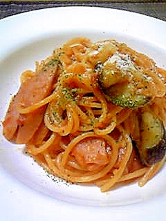 時短 ナスとソーセージのトマトジュースパスタ レシピ 作り方 By Ta16 楽天レシピ