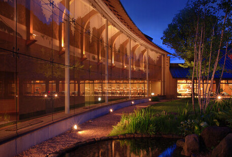 落ち着いた雰囲気でお食事を楽しみたい お客様に和食処「佳苑亭」・お食事処「牡丹」「天花」「竪小路」、 大人のくつろぎ空間ダイニング「雪舟」 お客様のお食事スタイルにあわせて 各種会場をご用意致します。.