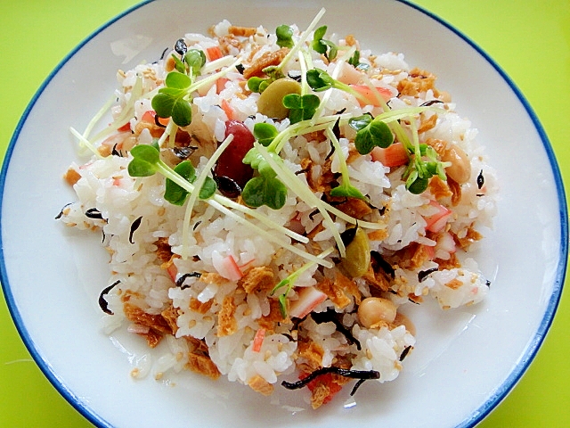 いなりの皮とお豆の混ぜ寿司 レシピ 作り方 By Mint74 楽天レシピ